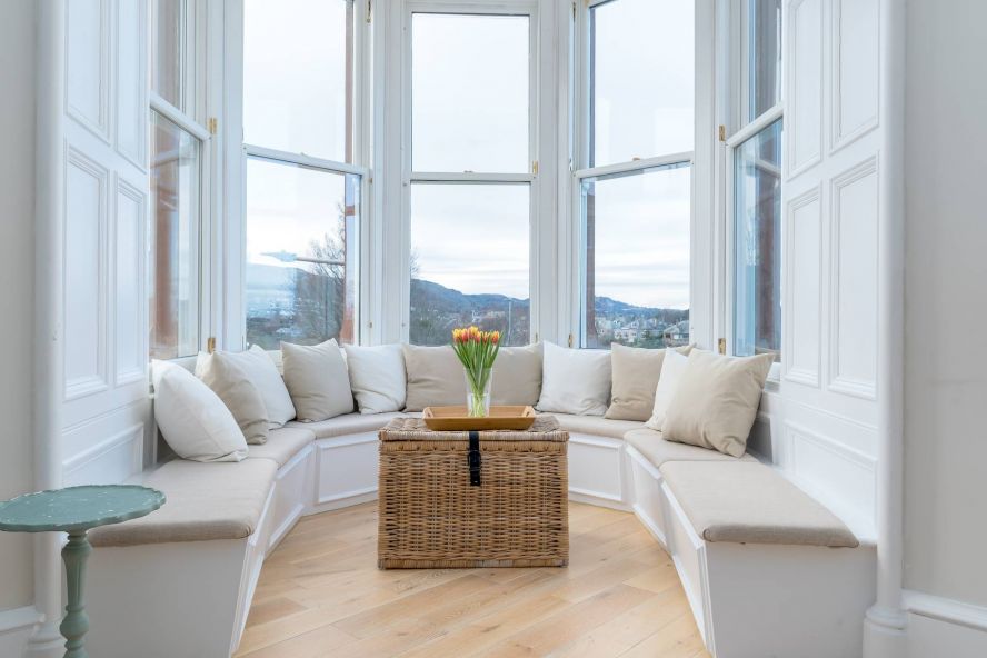 - Elegant sitting room with corner turret